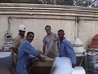 The weight of the container required a crane to be used to re-set the wheels after loading. We wrapped and sealed over 150 lights, lenses, and boxes of spare parts during each of our long days there. Since there was no fork lift available, we loaded the 500mm and 300mm lights using a hand truck! Many heartfelt thanks to all the great MENAS staff that assisted us with anything we needed!