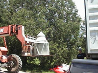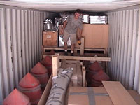 This was quite a job working inside the steaming steel container with the sunny climate and 120 degree temps! For the Fresnel Lighthouse Lenses, we carefully disassembled them and encapsulated the lens panels inside custom built timber crates.