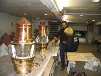 Once the container arrived at our restoration shop, it was unloaded and we have begun the arduous task of restoring the lights.